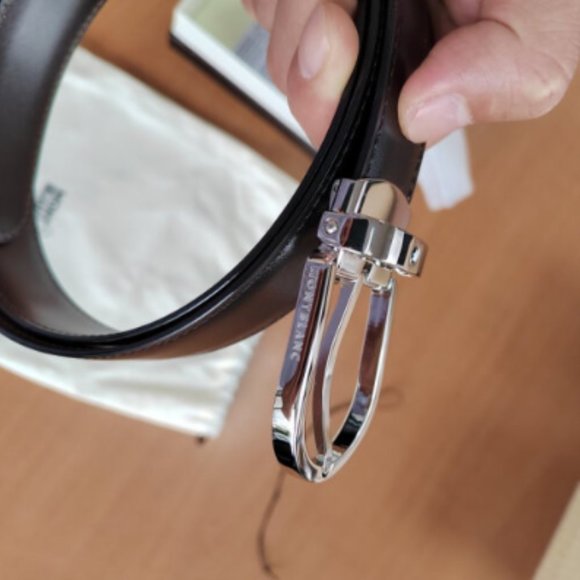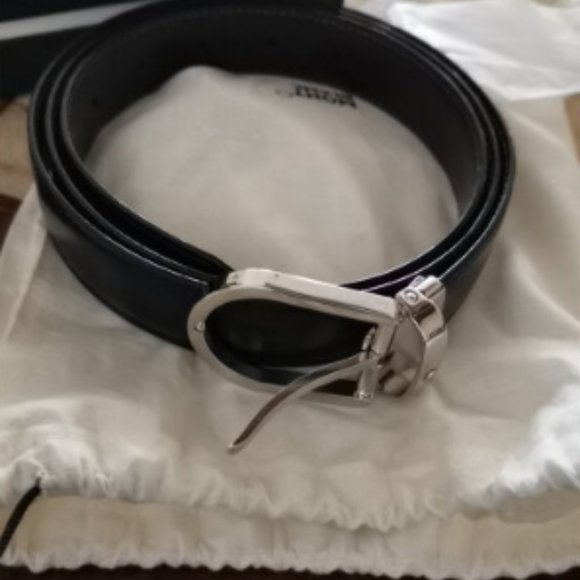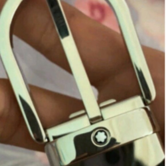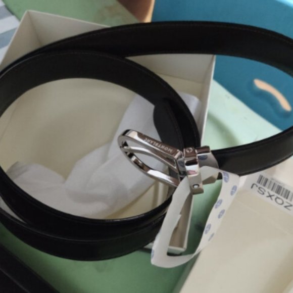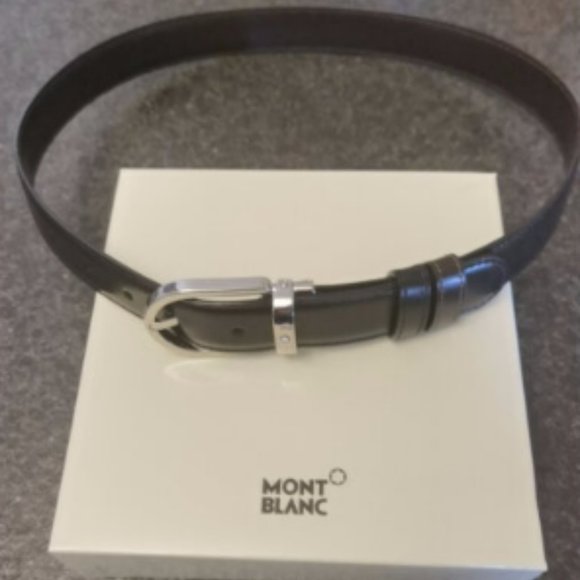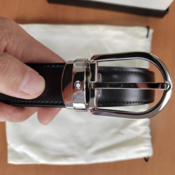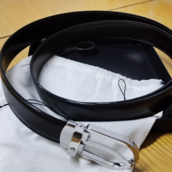 Ontblanc men´s classic series oval button / belt, leather material, horseshoe palladium plated buckle, size: 47.24 ″ * 1.18 ″, commodity origin - Germany