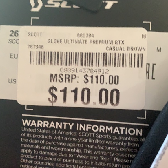Scott’s gloves. Rated for cold conditions with gore Tex system to guarantee to keep you dry.Unisex medium.