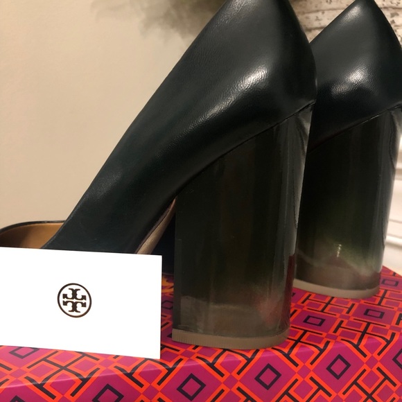 Beautiful emerald green pointed toe pump with ombré heel effect. Very chic. Great work shoe or for a date night. Dust bag included. Size: 6M. Heel size: 4.5 inches. New, never...