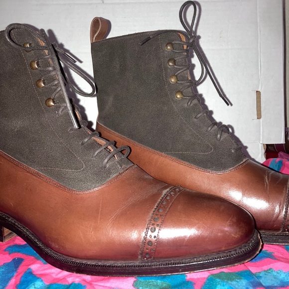 Beautiful boots! These are sold out on the Meermin site and they’re ready to be worn around. They have suede panels (the darker brown in the picture). Feel free to ask any questions!