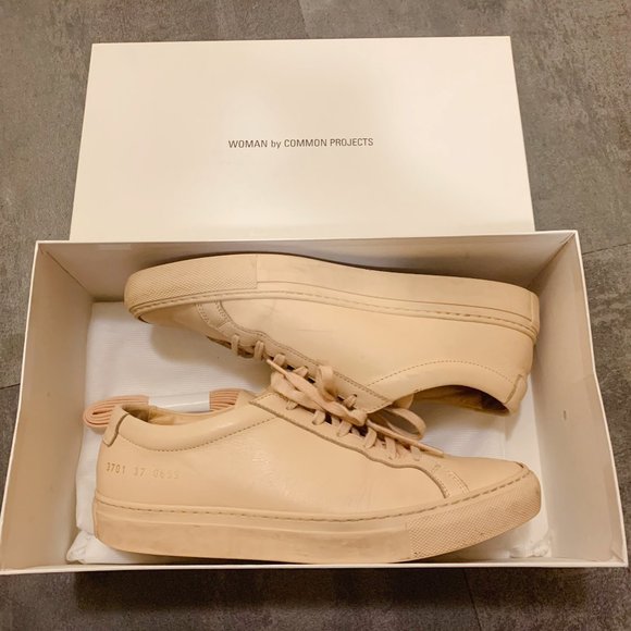 Woman by Common Projects Pink Original Achilles Low Sneakers (Nude)EU size 37/6.5 WGreat condition with box, comes with a dust bag and one extra laceMade in ItalyMake your offer! All sales are final. No returns.