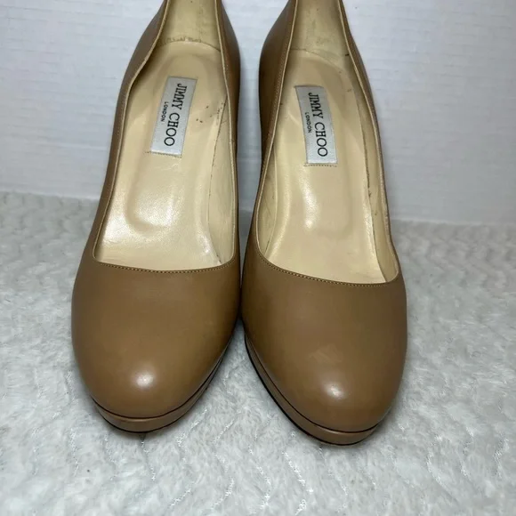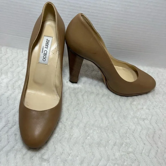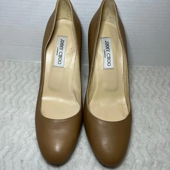 Jimmy Choo Women’s Tan classic leather pumps Heels Shoes Size 39 US 8.5