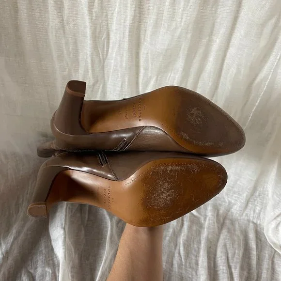 Knee High faux leather boots from french brand, Sezane in a light brown colorexcellent condition, only worn once with no visible signs of wearsize: 40/ US 9heel height: 3”shaft:...