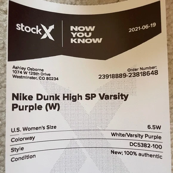 Authentic Varsity Purple High Dunks SP—- Wmns size 6.5 ( fits 7-7.5)