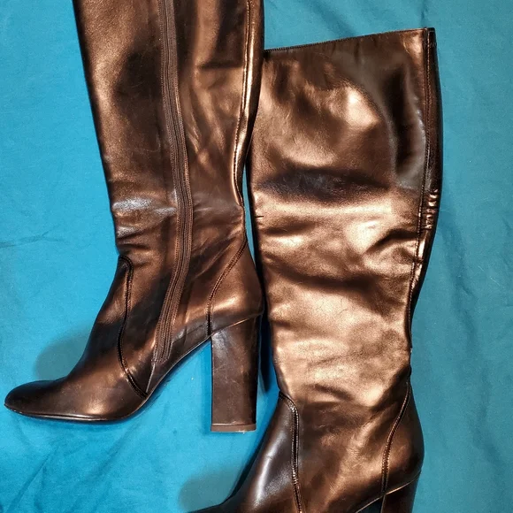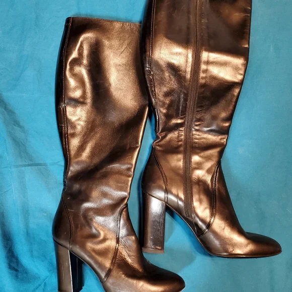 This is a classic pair of Italian Delman boots in black with a tapered, block heel in size 6.They are in absolutely perfect condition.