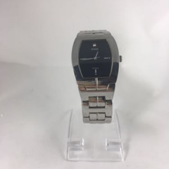 Pre-owned : Seller Notes:“minor scratches on bend”Guess wrist watch for men. Mint condition. Black dial , stainless steel back.