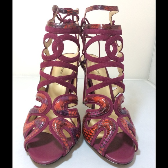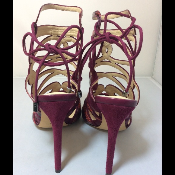Alexandre Birman Shoe - In perfect NWT condition and as always, guaranteed authentic! *Grape colored*Sandal*Tie closure on the back at heel*Snakeskin/Suede*Stiletto*Open toe*4.5...