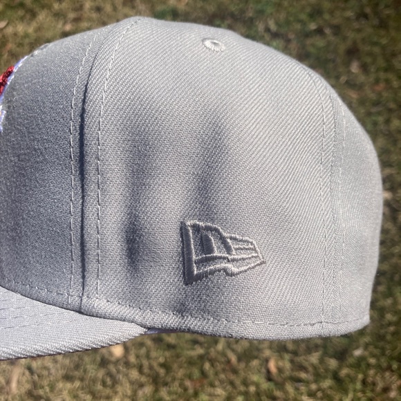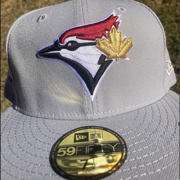 Grey Blue Jays Fitted7 1/2Burgandy Underbrim40th Anniversary PatchWhite Sweatband