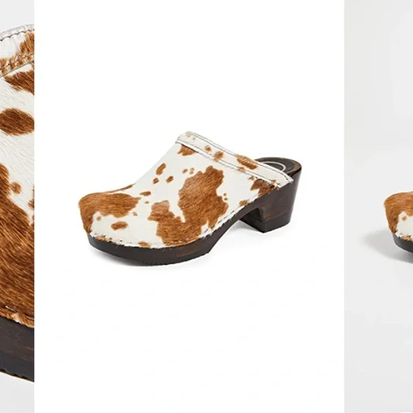 Wore a few times but realized I really need a bigger size (sadly! I love them)Super comfy and easy height for walking“Old School Mid Heel Clogs Brown Cow Pony/Coffee Base. Set on a carved wood sole, these No. 6 clogs are crafted from luxe cow hair in a playful cow pattern. Pair yours with everything from calf-skimming midi dresses to perfectly distressed jeans.”