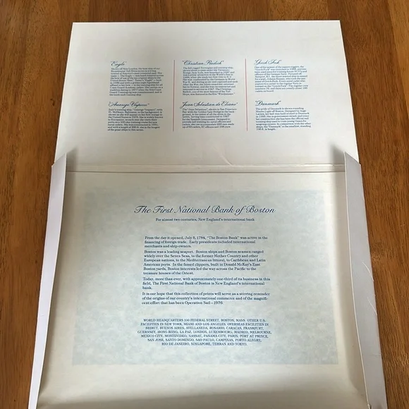 Celebrated sailing ships from the first national bank of Boston. 6 prints