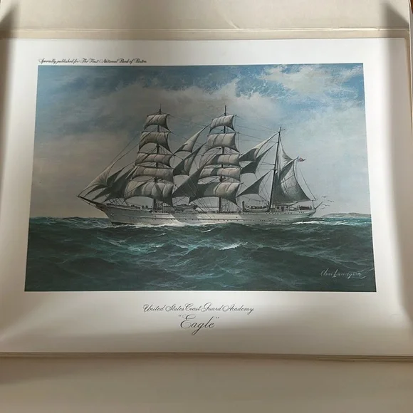Celebrated sailing ships in Famous American Ports by Charles Lundgren. To commemorate operation sail in July of 1976. The six prints are the Eagle, American Vespucci, Christian...