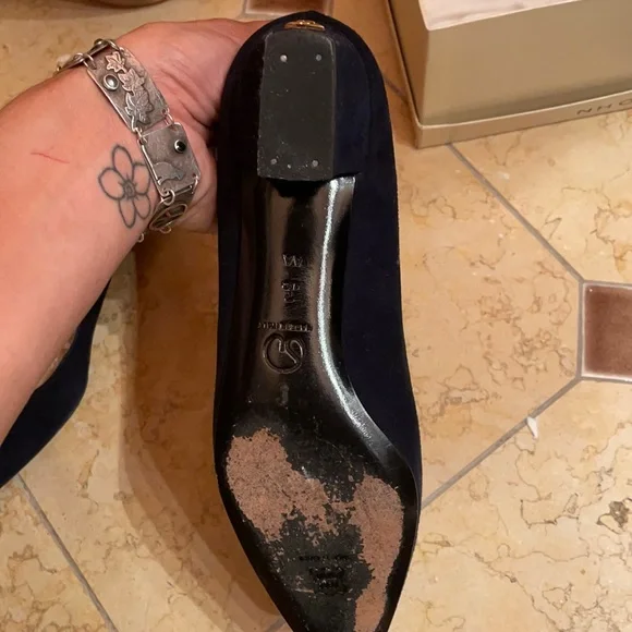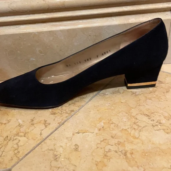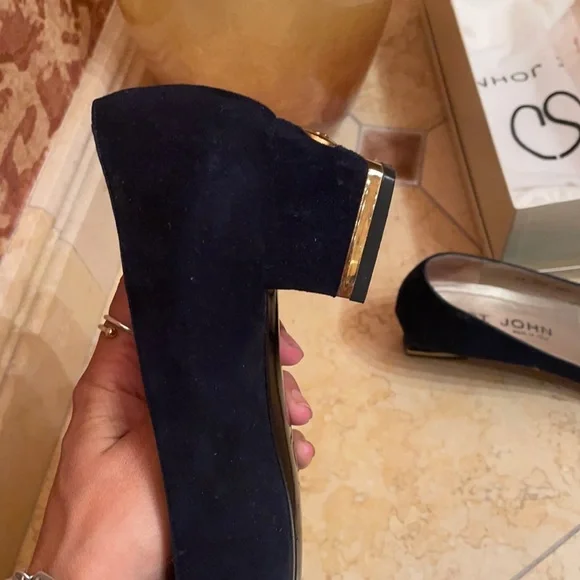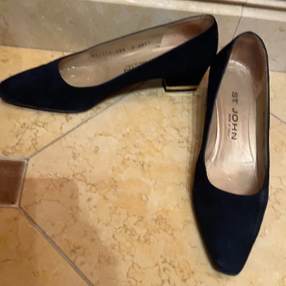 St John Navy Suede Pumps w/ Gold accented heel