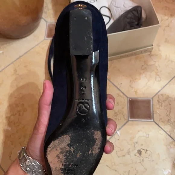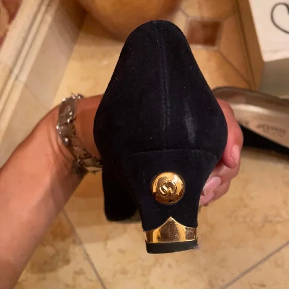 Blue suede pumpsGold accented heelsGently worn, see photos for wear, great condition7.5 AA