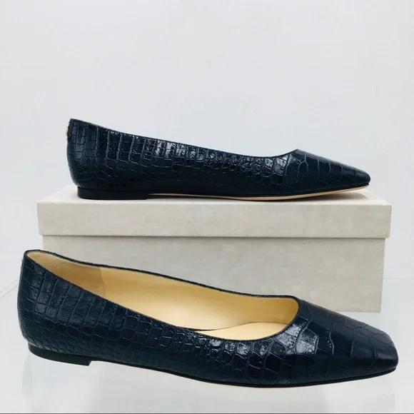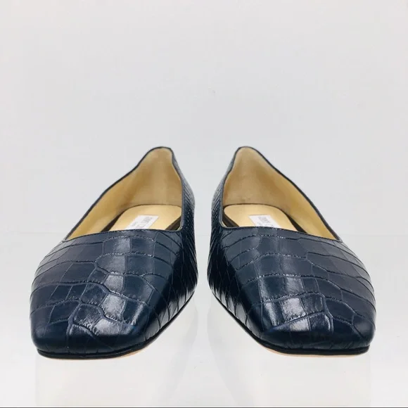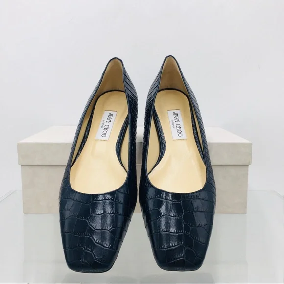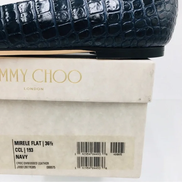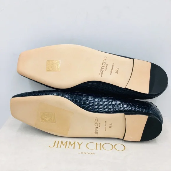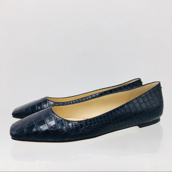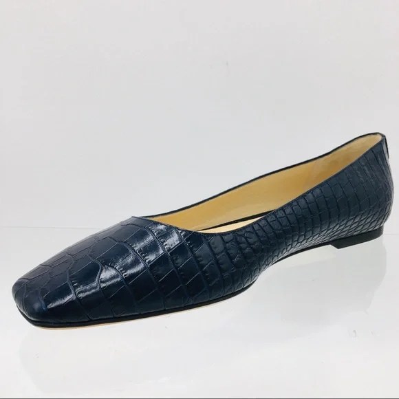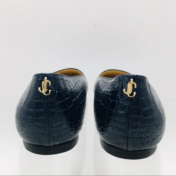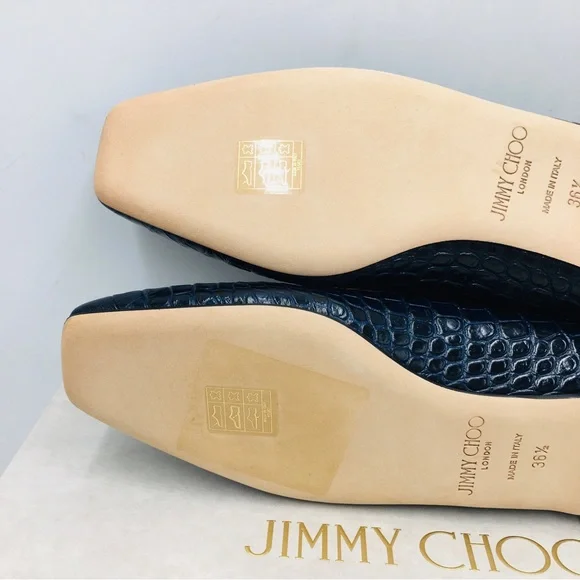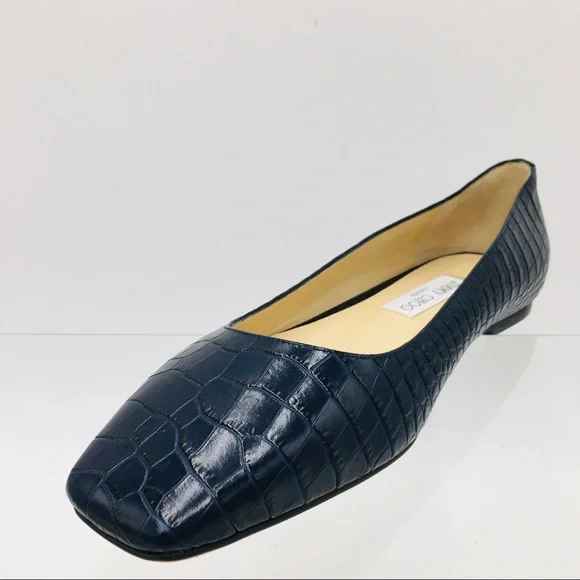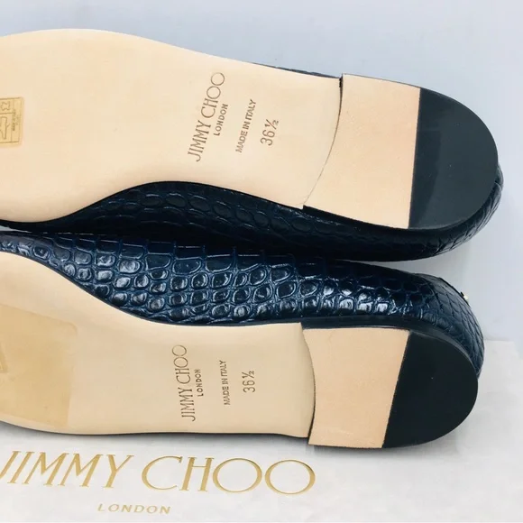 Jimmy Choo Mirele Flat Navy Croc Embossed Leather Women’s Shoes
