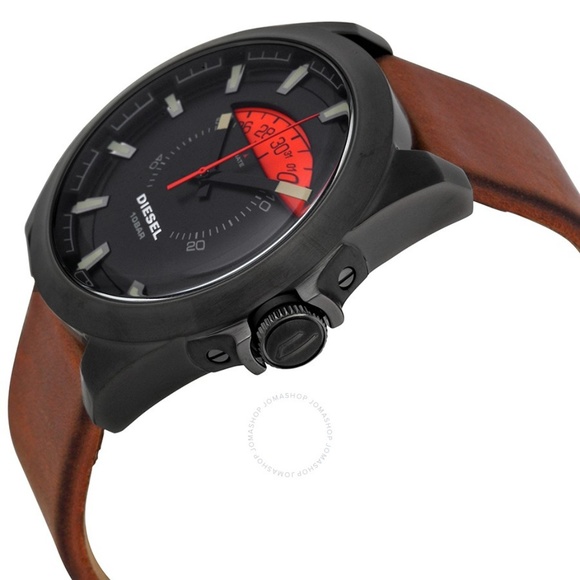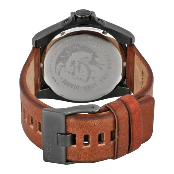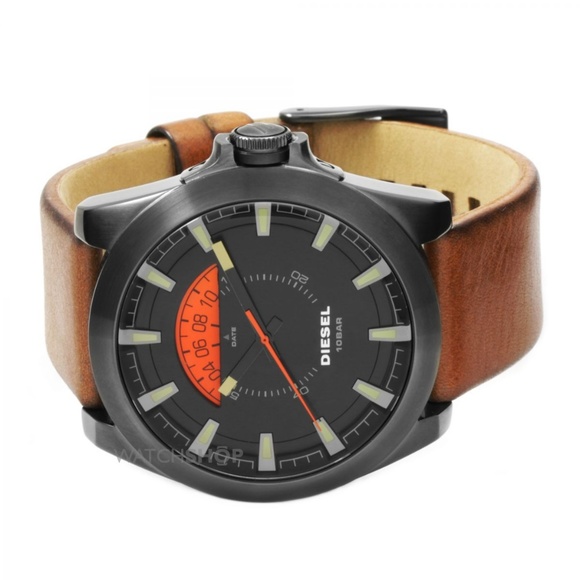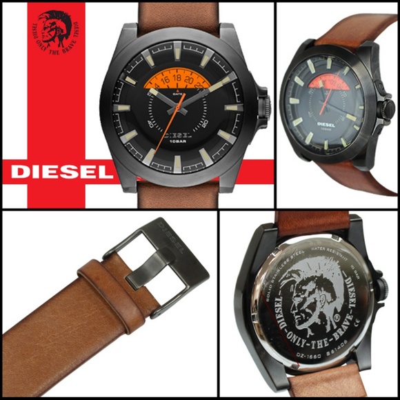 NEW with tags, original box & manual. Black Dial Brown Leather Men´s Watch DZ1660 Case diMen´sions: 50 mm x 46 mm. Case thickness: 12 mm. Round case shape. Band width: 24 mm. Tang clasp. Water resistant at 100 meters / 330 feet. Functions: date, hour, minute, second. Casual watch style.