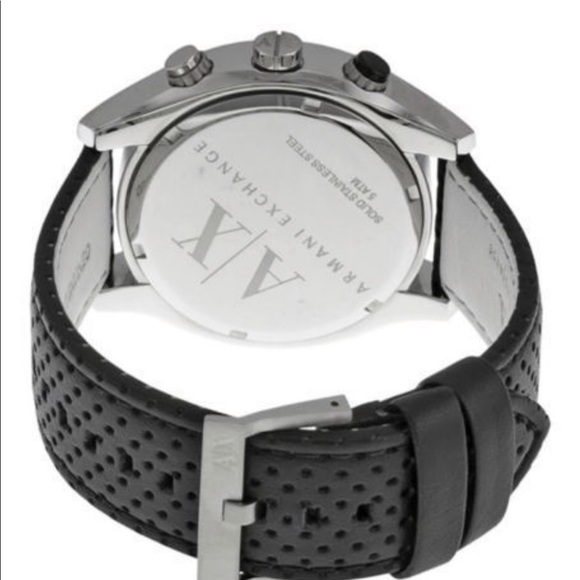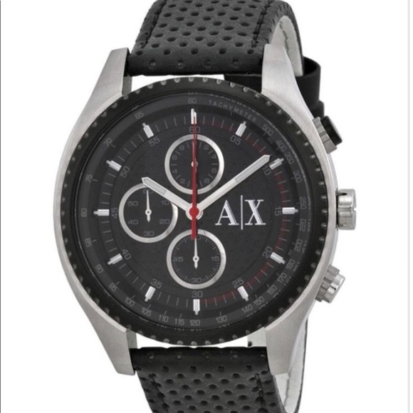 AX1600 Armani Exchange Black Perforated Leather Band Chronograph -AUTHENTICITY GUARANTEED-BRAND NEW WITH TAG-ORIGINAL BOX INCLUDED-WARRANTY/MANUAL INCLUDED-SHIPS WITHIN 2 BUSINESS DAYSTHANK YOU FOR LOOKING AT OUR LISTING