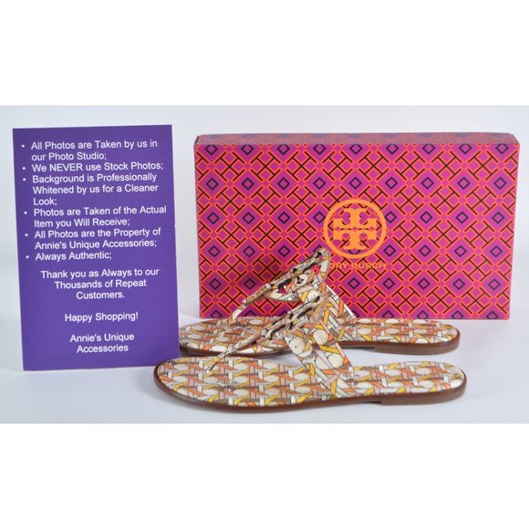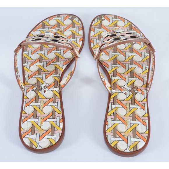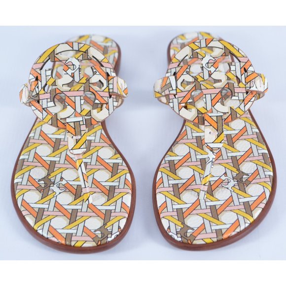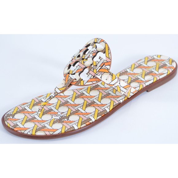 New Tory Burch MILLER WELT Geo Combo Printed Leather Sandals Slides Shoes 9.5