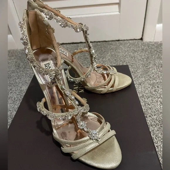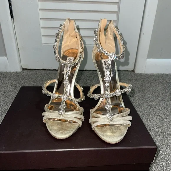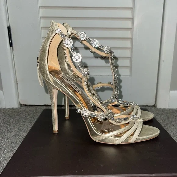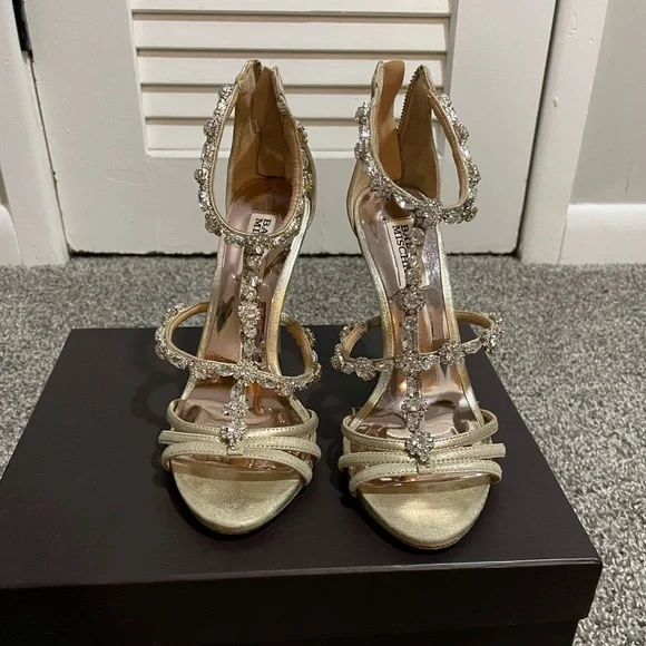 Gold jeweled badgley Mischka high heel stilleto US size 8