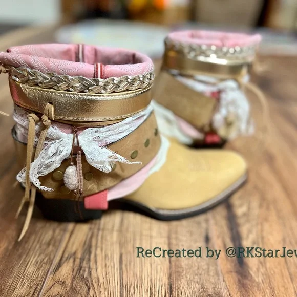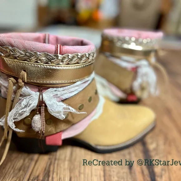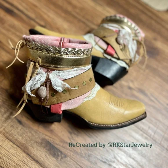 UPCycled cowgirl boots made from preowned boots and redesigned using repurposed materials.These are great for all occasions! Everywhere you go, compliments will fly and your spirits will be lifted!!Price is Firm. No Trades. No emailing private emails, if you ask me I will report you. Thank you.Follow me for the latest boots!Got your own boots you want designed, let’s do it!! Custom is soo fun and you get what you want!! Don’t have your own? No problem.