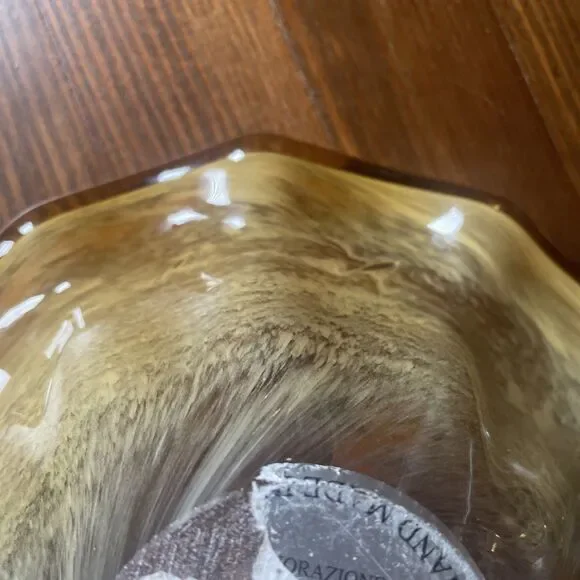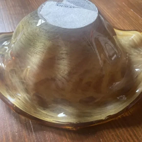 This stunning Murano Made in Italy glass abstract bowl features a beautiful brown, tan, and gold color scheme with a swirl pattern, showcasing the artistry of hand-blown...