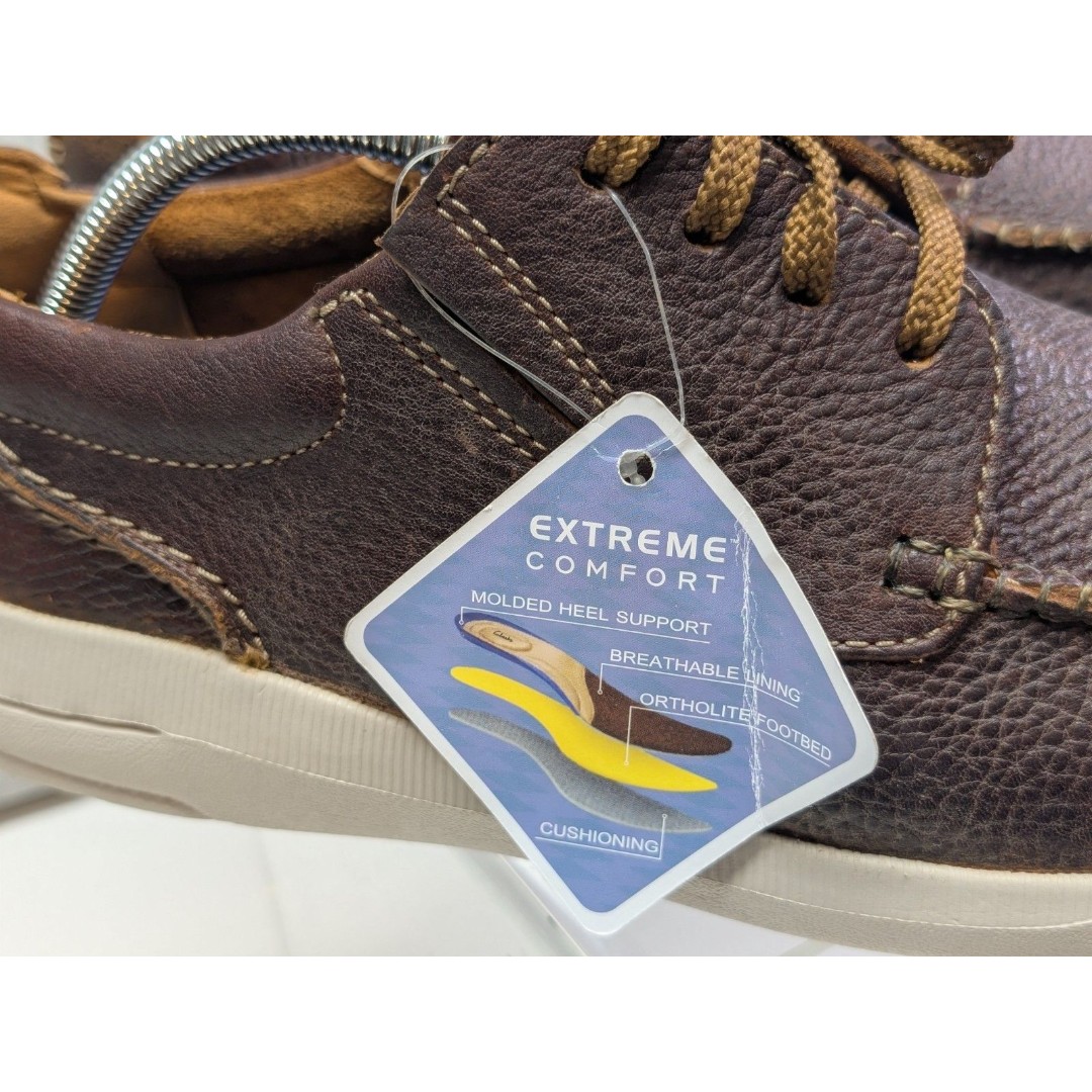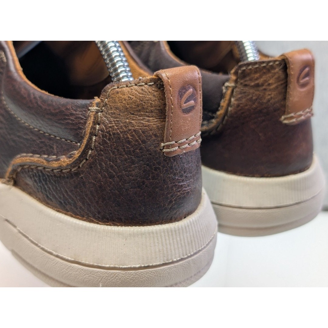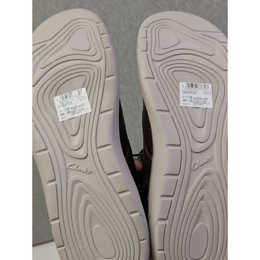 Elevate your shoe game with these stylish Clarks dress shoes. Crafted with a sleek brown leather upper and a comfortable EVA outsole, these shoes are perfect for any occasion. The textile lining ensures a cozy fit, while the M shoe width accommodates most men´s feet.These NWOB (new without box) shoes are a size 9.5, making them a great addition to any shoe collection. The Driftway Low design adds a touch of sophistication to any outfit, while the casual sneaker style keeps things relaxed. Don´t miss out on these must-have Clarks men´s shoes!