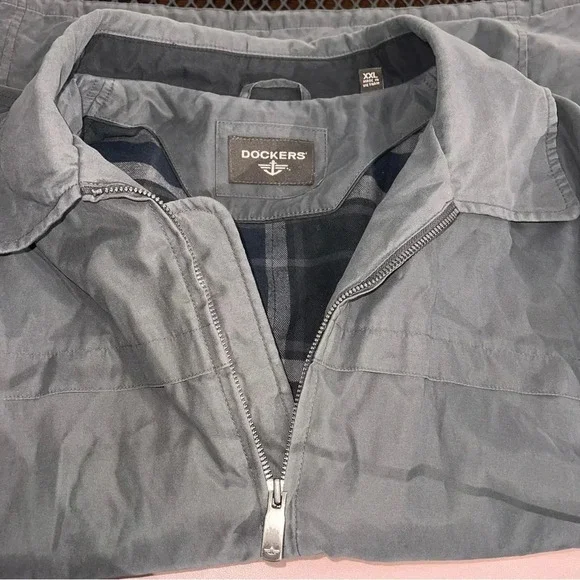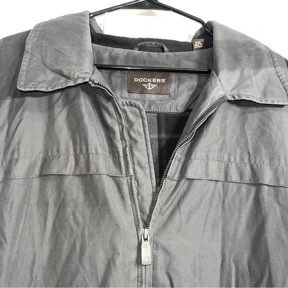 Dockers Iron Grey Men’s Jacket Size XXL Plaid Lined Zip Up Front