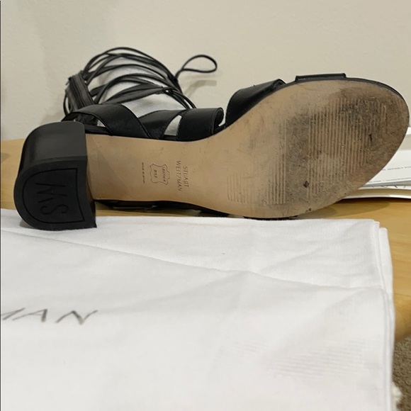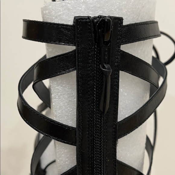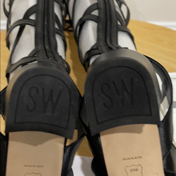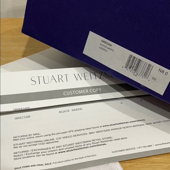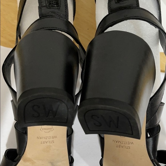 Like new gladiator sandal by Stuart Weitzman, size 8N. Black nappa leather, special ordered. Tried on, worn around the house and outside once only.I have the original box and dust bag. Box not included in shipping price; if box is requested I can include it for an additional shipping fee.