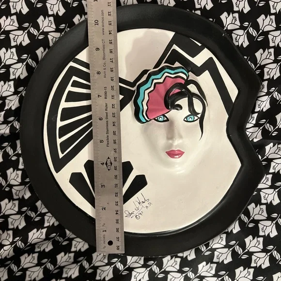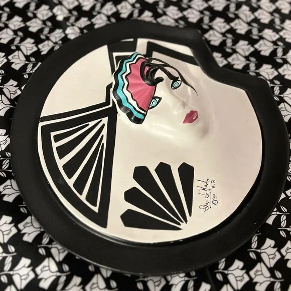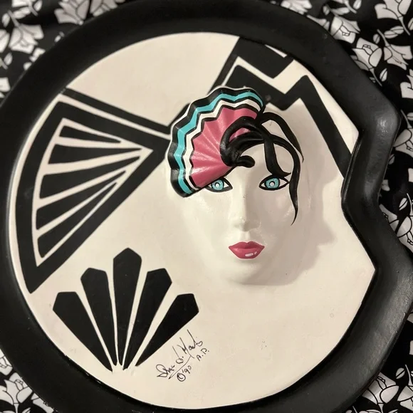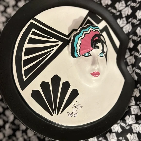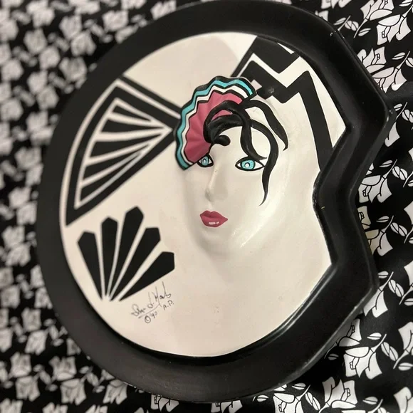 So funky and cool!Truly one of aKind.Kind of Art deco, kind of Retro, kind of avant guard.Family member bought at gallery event in 1990. Signed and dated by the artist.