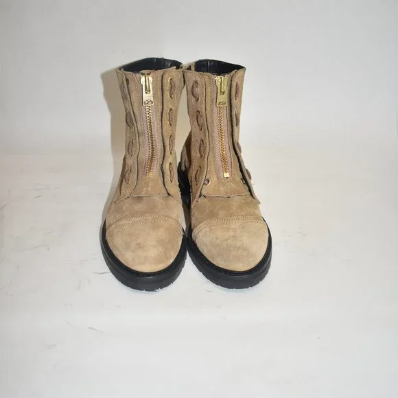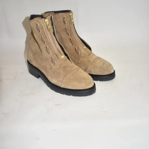 AllSaints Ariel Suede Lace Up Biker Boots Tan Brown Size 38 EU 8 US