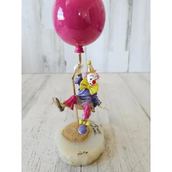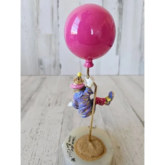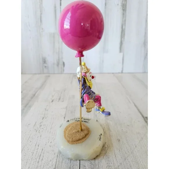 Ron Lee pink clown floating up away circus vintage statue 1998 gold