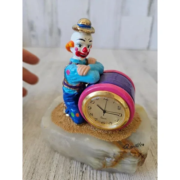 Ron Lee clown clock vintage circus gold figurine 1996 statue about 5-in tall by 4 in by 2.5-in, overall in good condition, clock looks to be more decorative not functional, no...