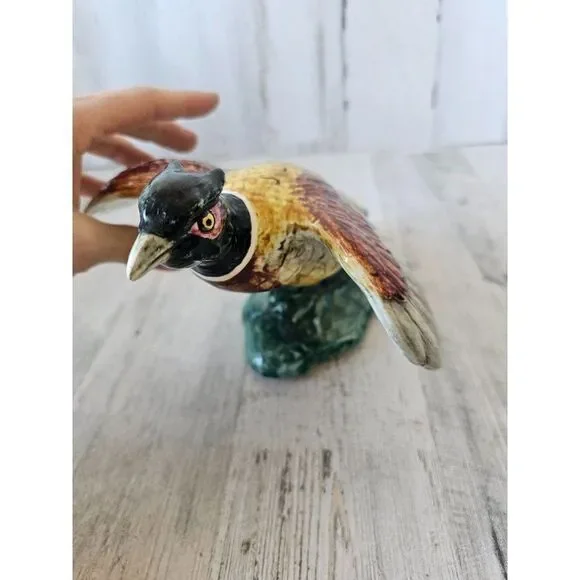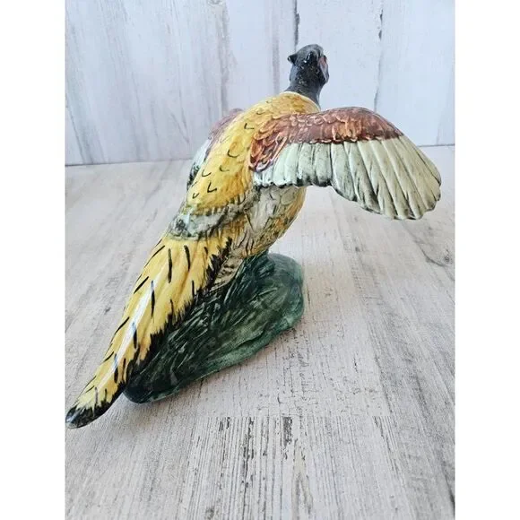 Stangl pottery pheasant birds statue quail figurine vintage decorstands about 6-in tall by 11 in x 9 in, overall in good condition, looks to have a couple areas wear noted on the wings otherwise no other problems.If item is with box will be in pictures, getting what is pictured only.Non smoking homeWe are a family run business with 3 little girls! We are building our own brand with them and hopefully you will join our journey!Thank you so much and have a wonderful day!Exclusive Elegance