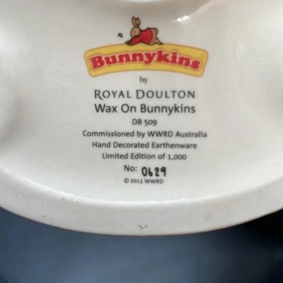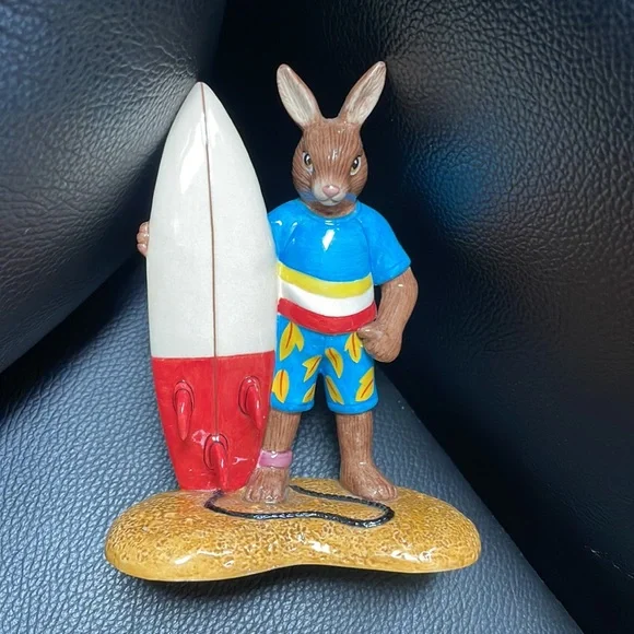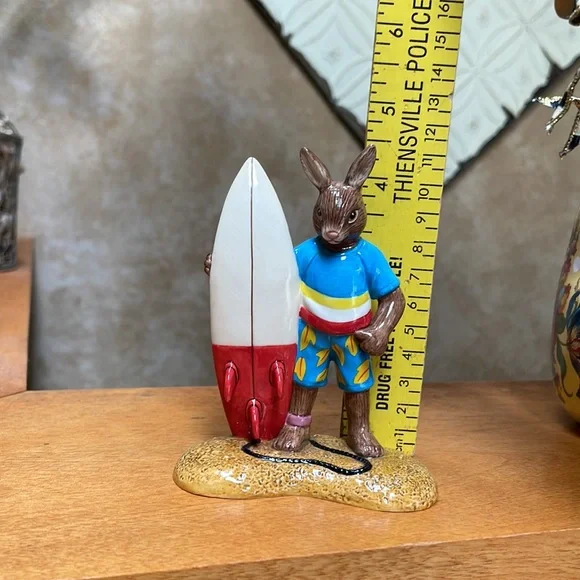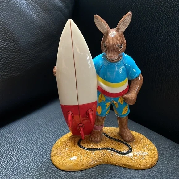 ©️2013 WWRD, commissioned by WWRD Australia, DB 508. Hand decorated Earthenware. Limited Edition of 1,000, this one is No. 0629. Wonderful preowned condition. Love this Aussie bunny’s “hang 10” fearless expression as he readies to brave the wave!