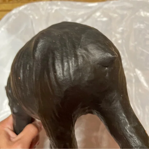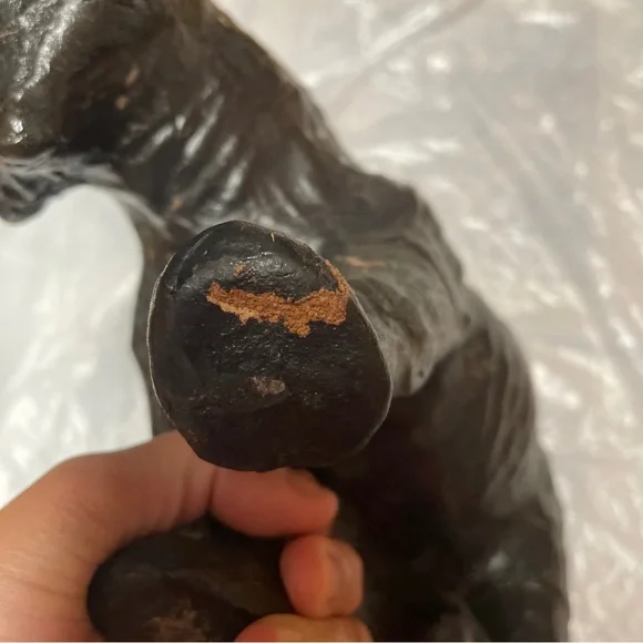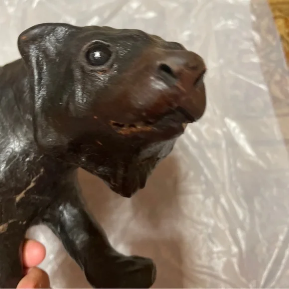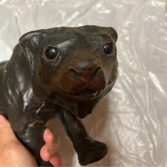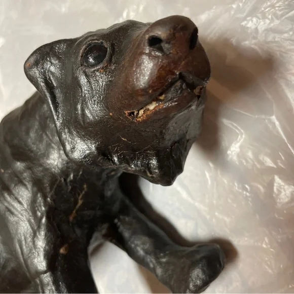 Vintage Bear Covered With Black Leather Skin Handmade Decorative Sculpture 7”