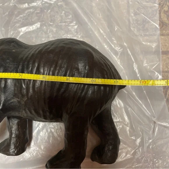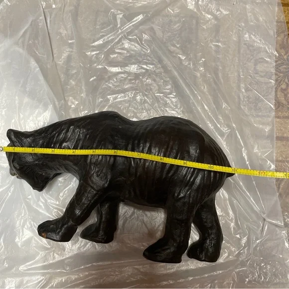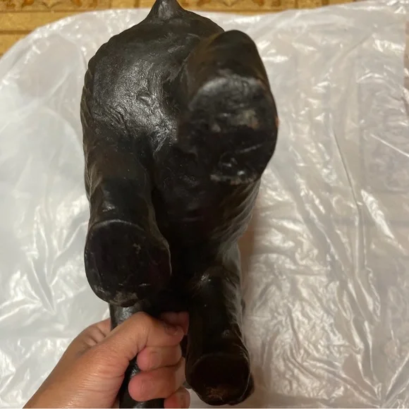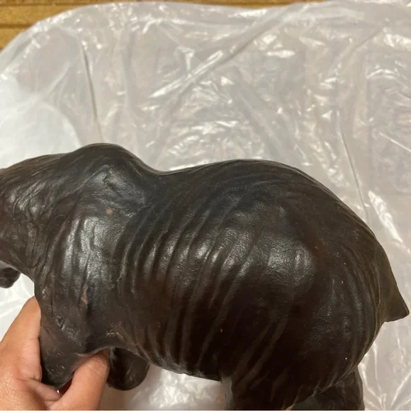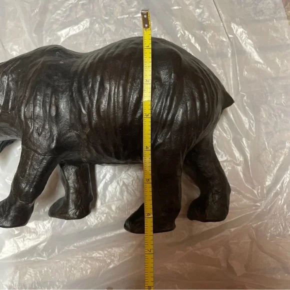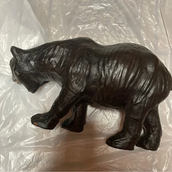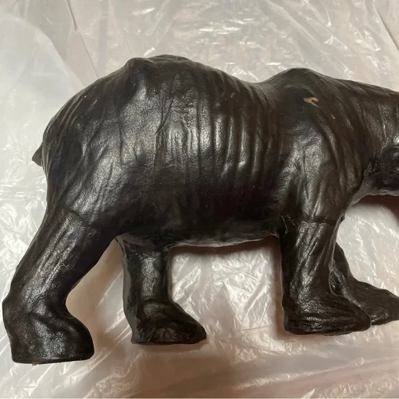 Vintage Bear Covered With Black Leather Skin Handmade Decorative Sculpture 7”In good Pre owned condition