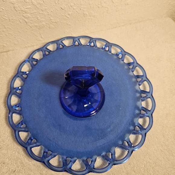 Open Lace Pattern #44 Cobalt Blue Serving Platter Center Handled Co-Operative