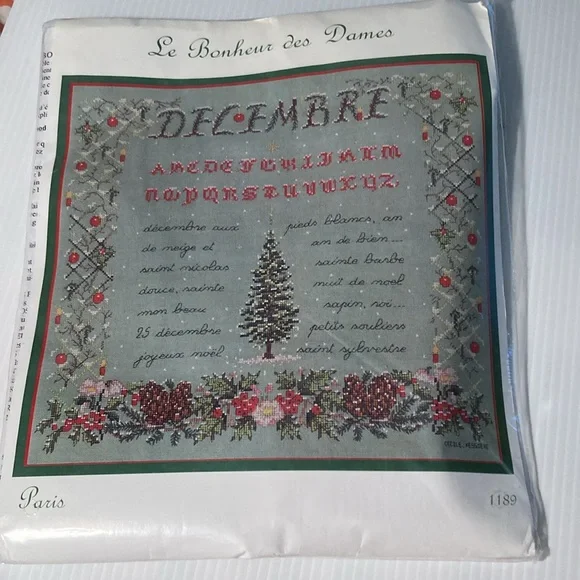 Vintage Le Bonheur des Dames París French December sampler cross stitch. G1 1189