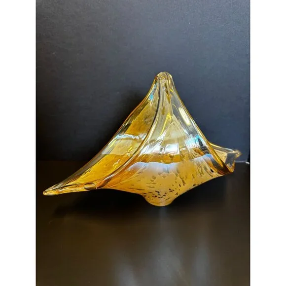 Vintage Murano Handblown Amber Glass Decorative Centerpiece Bowl