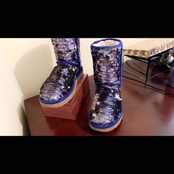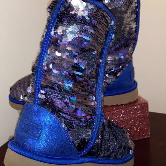UGG WOMENS BOOTS CLASSIC SHORT SEQUIN NAVY