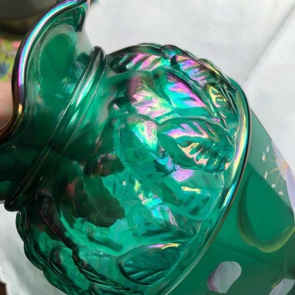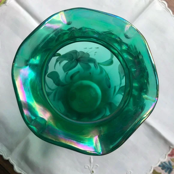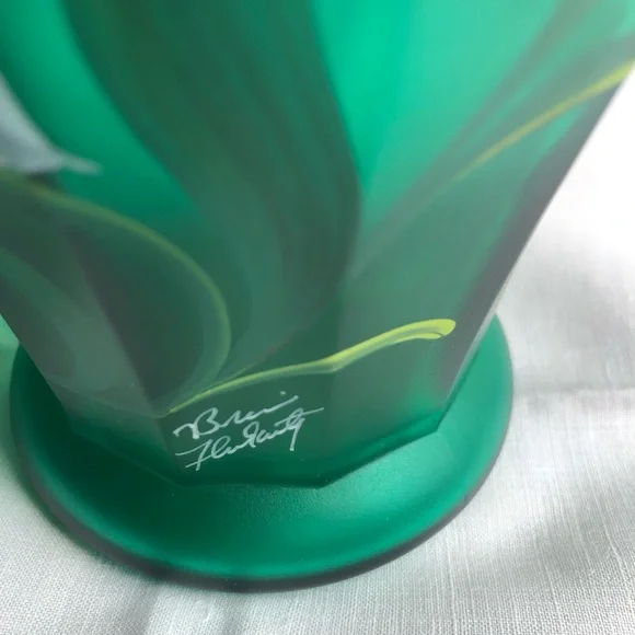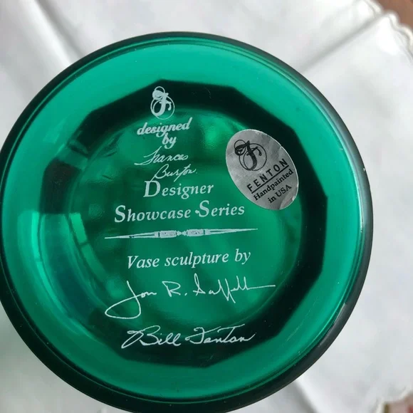 Fenton emerald green art glass designer showcase series hand painted lily EUC