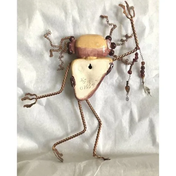 Studio Clay Art Spirit Figure Sculpture Original Pottery and Copper