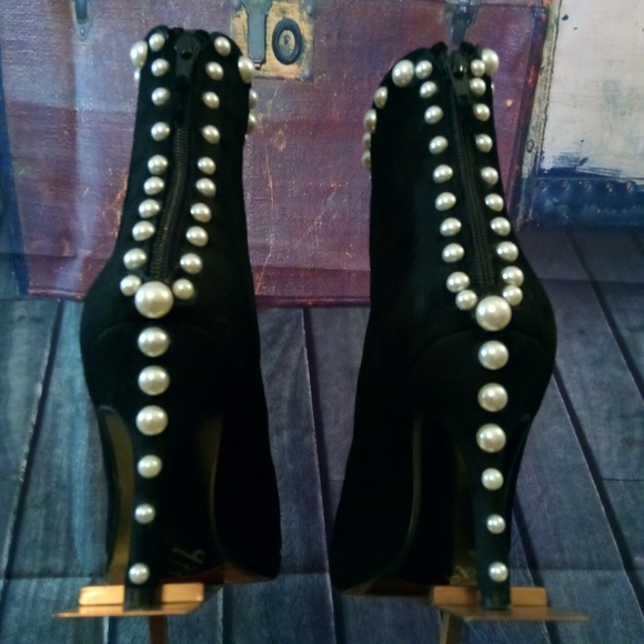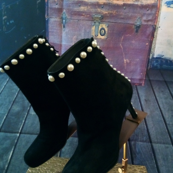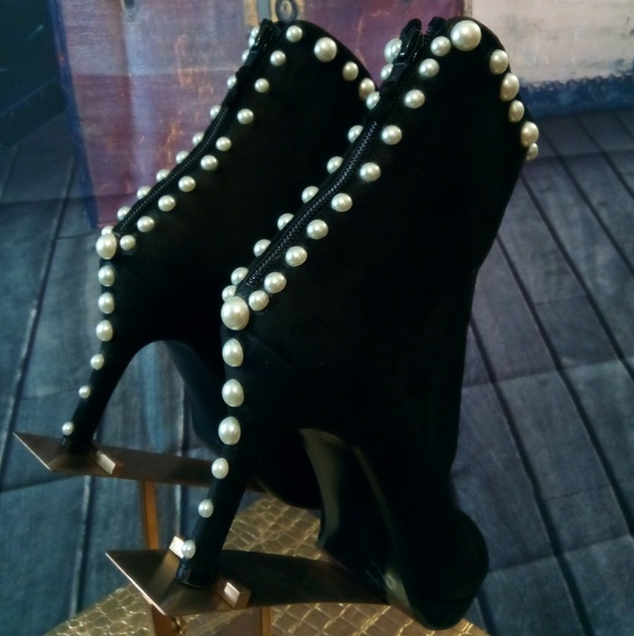 These Stylish High Ankle Pearl Boots Are So Sexy And Classic They Zip Up From The Back! They are a standard size 8 with a narrow round toe. These stylish pure suede boots are a...