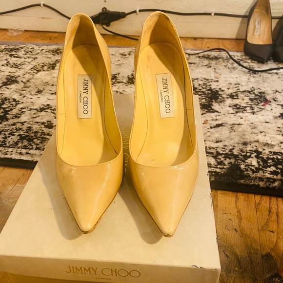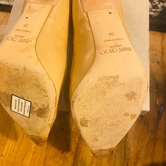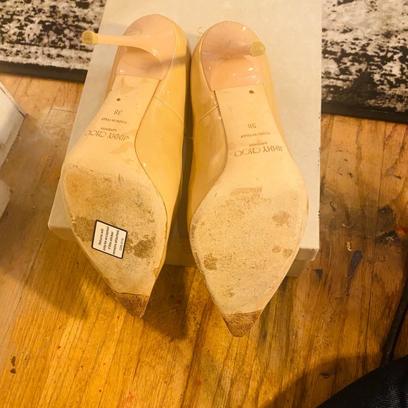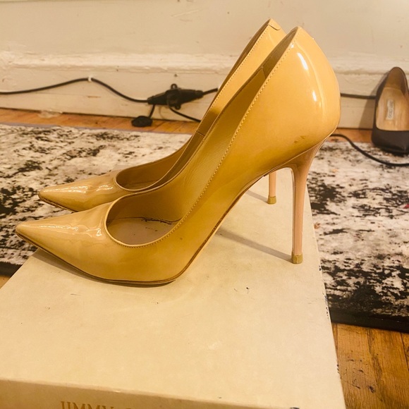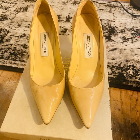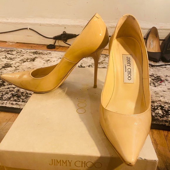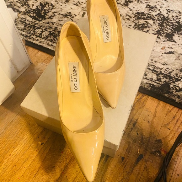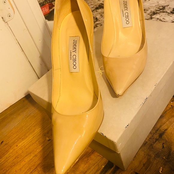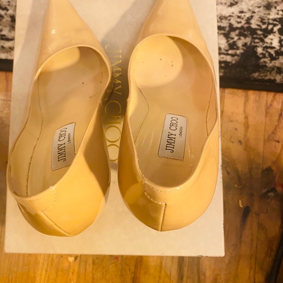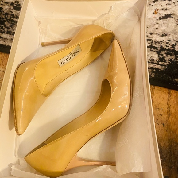 Jimmy choo patent nutural pointy Abel pumps in very good condition has a couple of dots outside and minor on inside soles