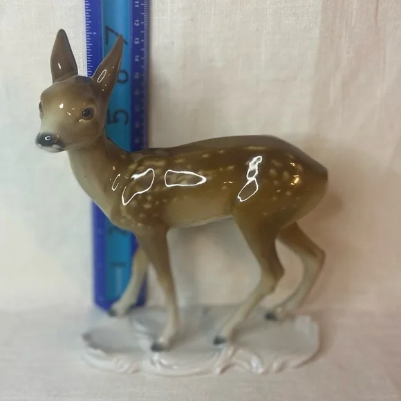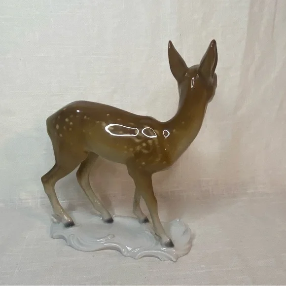 PreLoved.Excellent Condition. See PhotoSmoke Pet Free HomeVintage, Rare, M&O, Metzler & Ortloff, Germany, Signed, Stamped, 5”x6”, Figurine, Kunstporzellane, Collectibles, Porcelain, Art, Decoration, Decor, Hand Designed, Animals, Deer, Fawn with Spots, Grazing, Wildlife, Game room, Curio Cabinet, Showcase, LippertI also have the mate to this one , fawn grazing” in my closet if you like this one!!
