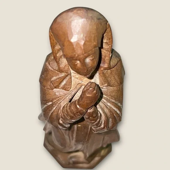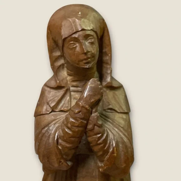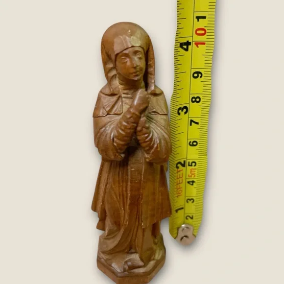 Handmade Carved Wood Virgin Mary Religious Icon Sculpture 4.5” H VintageGreat Condition Pre-owned Please check pictures for details