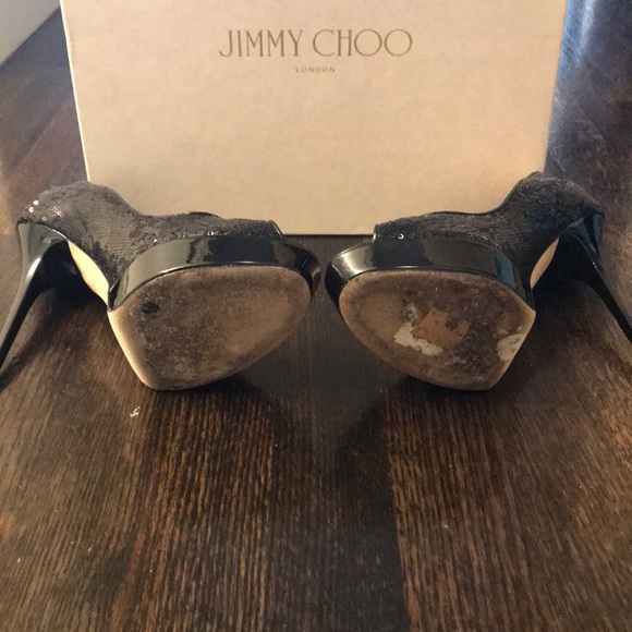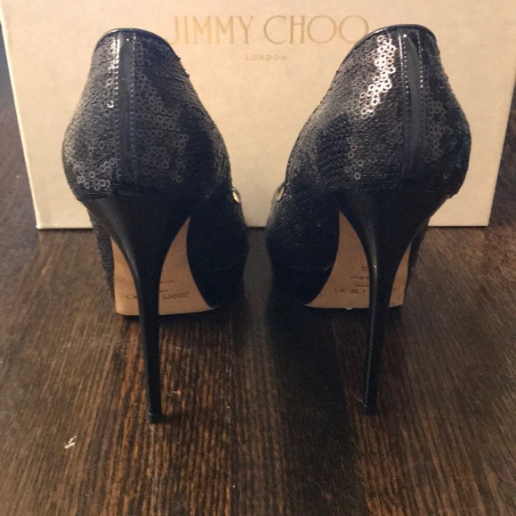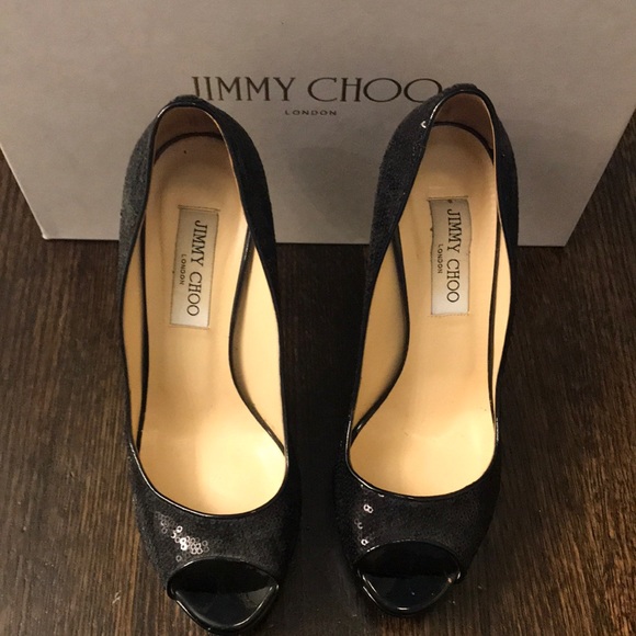 JIMMY CHOO peep toe sequin platform heels. Only worn about 5 times, no signs of wear or tearBox NOT included (who has space in NYC lol)
