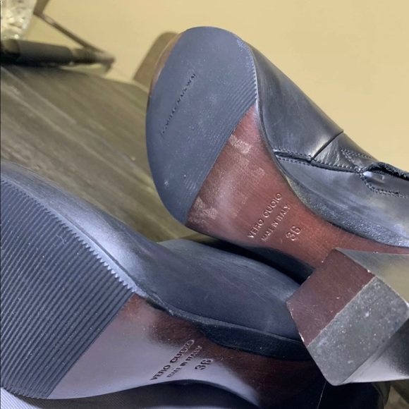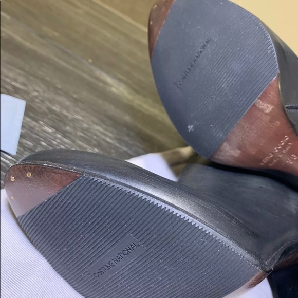 COSTUME NATIONAL Black Leather Boots w/Wood Heel & Zip Closure