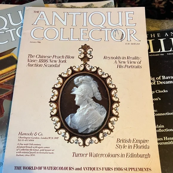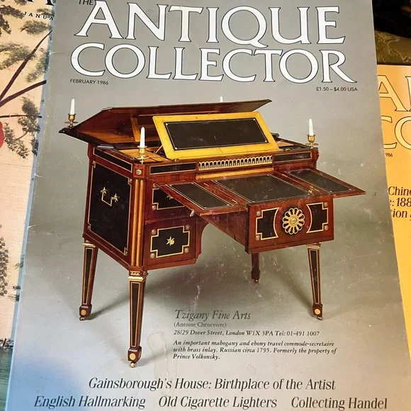 Set of there of The Antique Collector magazines featuring elegant designs and historical insights.Edition January, February and November 1986 edition.