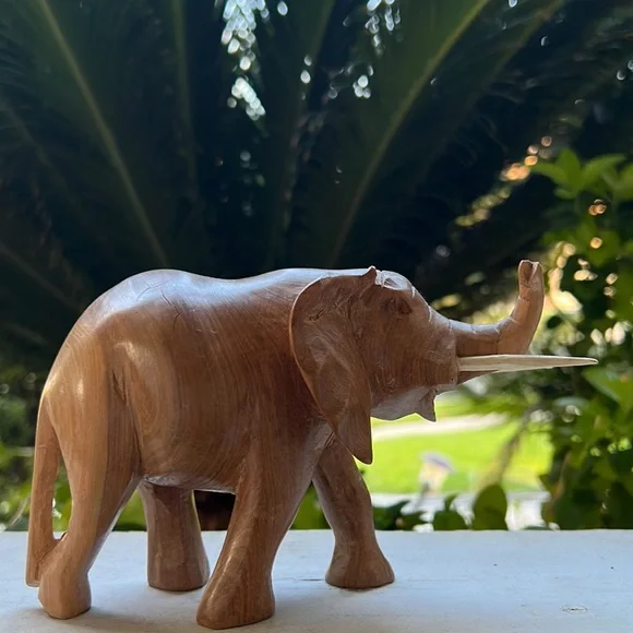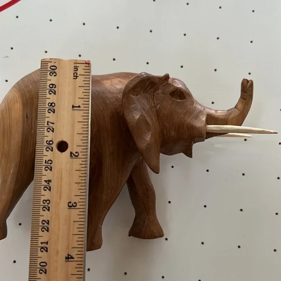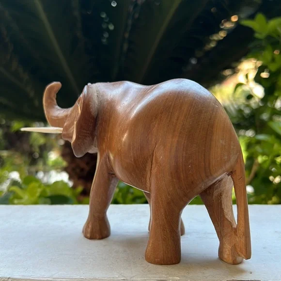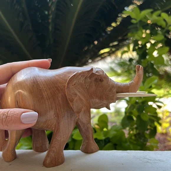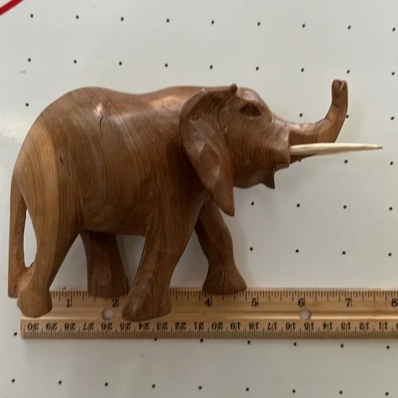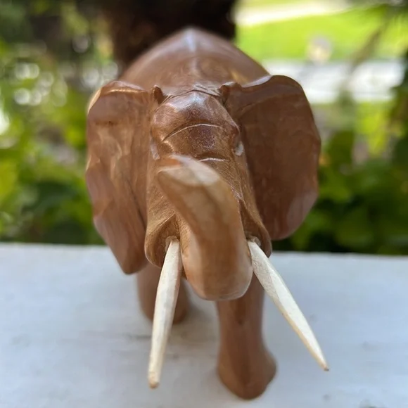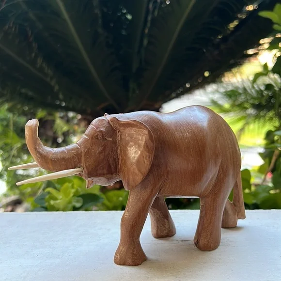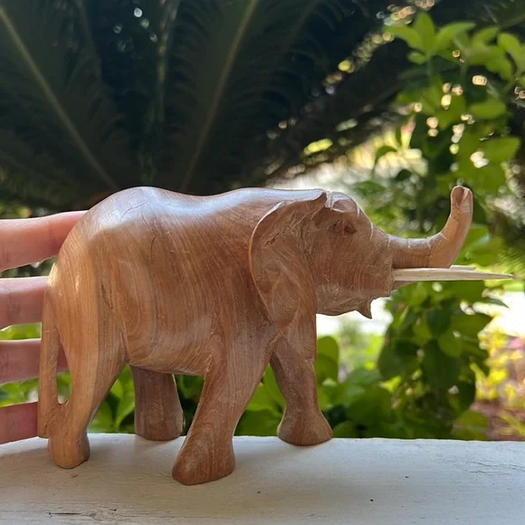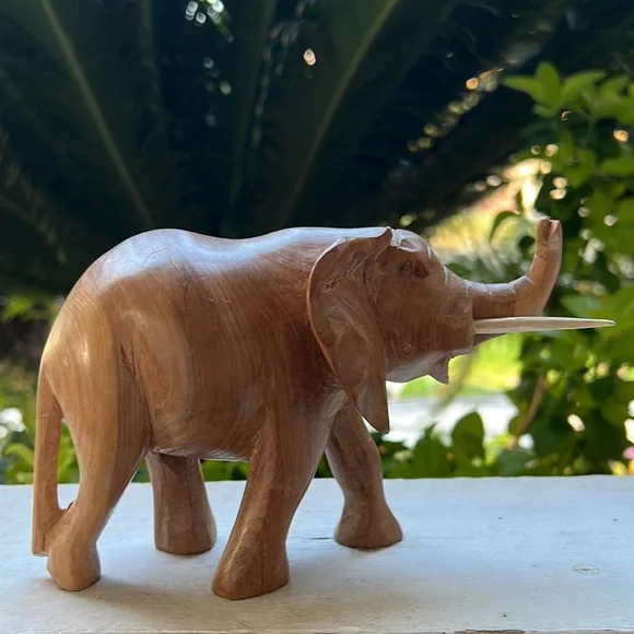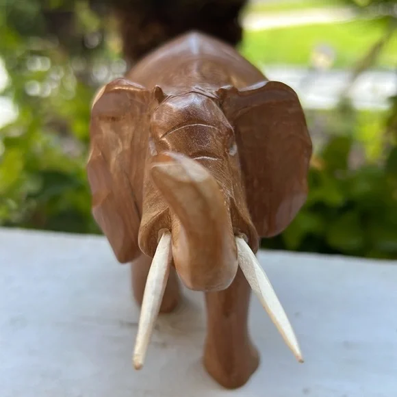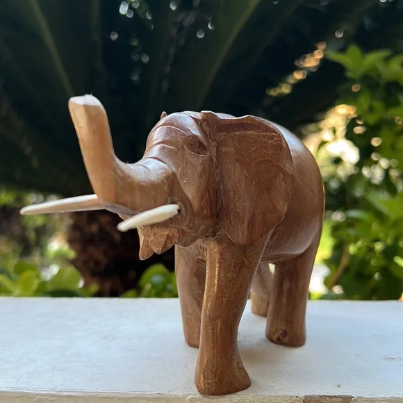 Vintage Hand Carved Solid Wood Elephant Statue With Tusks Gorgeous piece of artOne of a kind In an excellent Vintage ConditionWill be packaged with care and shipped To you on the same day of purchase