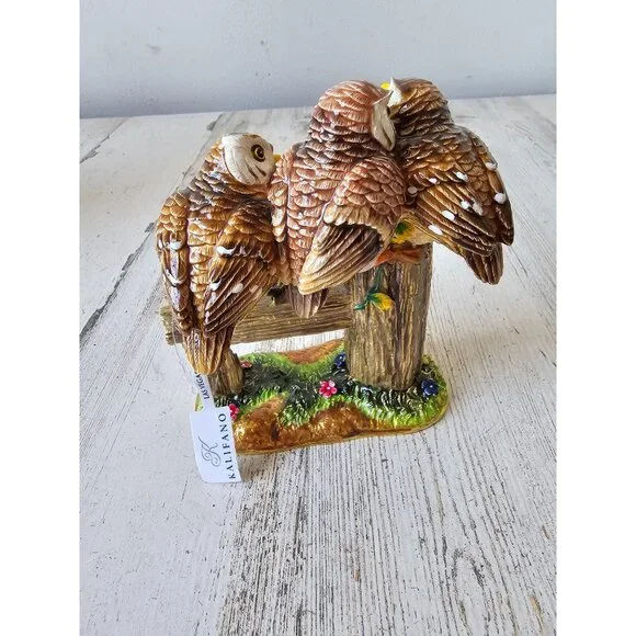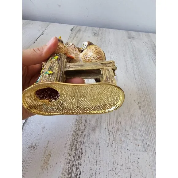 Kalifano owl bird trinket jewelry box gold unique fence post